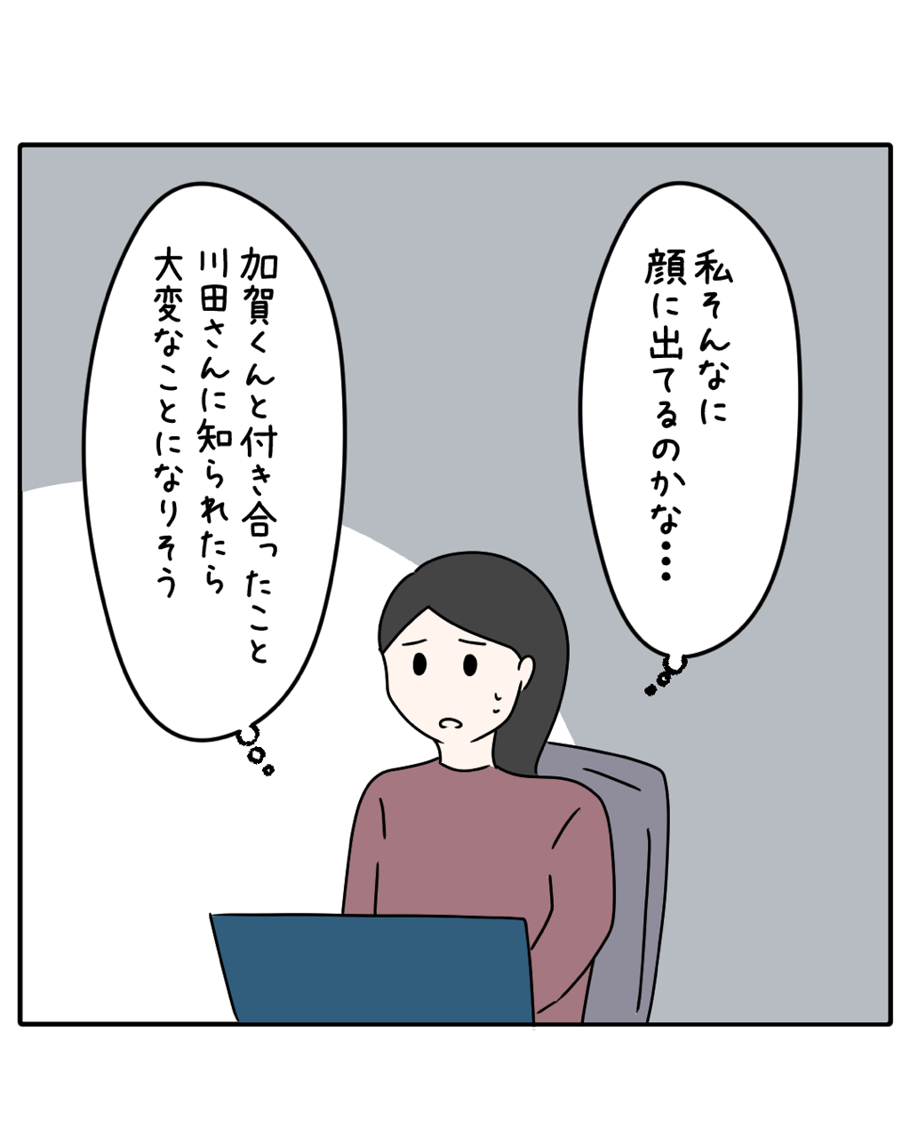 えりさん彼氏できたんですか?まさか加賀さんじゃないですよね?私、前に加賀さんのこといいなって思ってるって伝えましたよね?えりさんがそんな略奪みたいなことしないですよね?