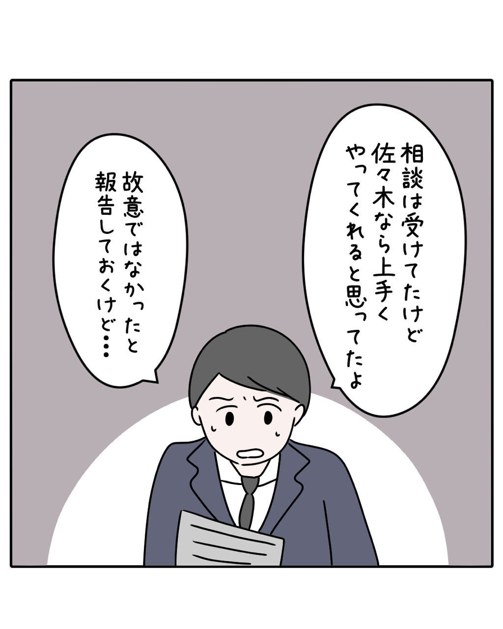 頑張るほどに見えなくなる 116話 2026年02月17日 カテゴリなしの他の記事 < 前の記事次の記事 > コメント コメント一覧 (14) 1. クソ上司。 2026年02月17日 19:02 ほんとにかわいそう過ぎる。 こんな会社やめよう。 多分やけど、今後の展開的に同期彼氏からも振られると思う…パワハラするやつ許せないみたいな雰囲気やったし。フラグが立ちまくってる…。 0 おと がしました 2. さぁ 2026年02月17日 19:03 主人公はまんまと相手の思う壺にはまったね、、、 言ったもん勝ちだもんなぁ。 私、自分自身もこの手にハマり自分の立場を危うくしました、、、。今はやめてスッキリしてますけど笑笑 0 おと がしました 3. やめよう 2026年02月17日 19:08 やめよう そしたら周りも気づくさ 0 おと がしました 4. あー… 2026年02月17日 19:11 お前ならうまくやってくれると思ってたよ、って何? お前が被害に遭ってるのは知っているけど、お前が上手に相手をしてやれば良かっただろ? 俺は一応聞いていたけど、お前のために何かしてやる気はないから ってことだよね 何のための役職だよ!こういう時に出てきてなんとかしようとする立場でしょ そのために平社員より多く給料もらってるんだから 0 おと がしました 5. チョーク 2026年02月17日 19:11 これまでの相談を「佐々木がパワハラしてないって証拠がない」で切り捨てる上司はどこまで節穴だらけなんだろう。 産休に入る先輩とか、川田に気に入られながらも「学生気分が抜けない」と言っていた男性後輩に聞き取るとかもっと方法があるんじゃないの? 0 おと がしました 6. … 2026年02月17日 19:12 見てくれてる人がいるって信じたい 報われて欲しい こんな展開悲しすぎるよ😭 0 おと がしました 7. あんこ 2026年02月17日 19:24 逆に部下の相談に対して対応してくれなかった!と課長を訴えたい! 0 おと がしました 8. 可哀想すぎる 2026年02月17日 19:32 そんなことは無いとは思うけと彼氏がバワハラ理由で別れてあの女とくっついたりして もう会社辞めようよ まともに相談にものらないし味方もしてくれない上司 頭のおかしい後輩 全て捨ててやり直そう いい会社いっぱいあるはず 辞めたら誰があの女の面倒見るんだろうね 0 おと がしました 9. 課長 2026年02月17日 20:43 あんたが1番ダメやん 0 おと がしました 10. 勘弁して 2026年02月17日 22:24 ストレスが… このマンガ、ストレスが酷い… いつまでこの感じが続くんだろ そろそろしんどいよ お願いだから、そろそろえりに追い風ください 0 おと がしました 11. ひどい 2026年02月18日 00:08 課長のドアの閉め方や、言葉もパワハラじゃん。。。 0 おと がしました 12. みどり 2026年02月18日 09:57 えりが主人公だからえりの味方してしまうけど、自分が新卒で入って教育係がえりだったらきついかも 0 おと がしました 13. こじこじ 2026年02月18日 12:46 主人公の気持ちがわかりすぎて辛くなります。 私の苦しいは誰も手を差し伸べてくれず、丸投げ。 処理するタスクはたくさんあって、心の余裕もないですよね。 0 おと がしました 14. こんな職場 2026年02月18日 18:47 しがみつく価値すらないよ 辞めちゃえー 0 おと がしました コメントフォーム 名前 コメント 記事の評価 リセット リセット 顔 星 情報を記憶 コメントを投稿する