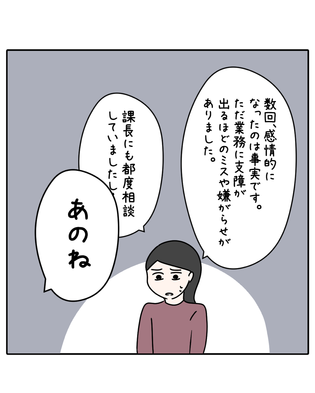 頑張るほどに見えなくなる 118話 2026年02月19日 カテゴリなしの他の記事 < 前の記事次の記事 > コメント コメント一覧 (22) 1. ななし 2026年02月19日 19:01 ここも最悪だった… 0 おと がしました 20. 冤罪事件を作り出す悪徳警察みたいだな 2026年02月19日 21:55 >>1 認めれば罪を軽くしてやる、みたいな… どうせ罪軽くなんてならないんでしょ? 後から反論しても「認めたんだよね?無実ならどうして違うと言い続けなかったの?」と言われるんだよね? 胸くそ悪い話だなー ざまあ展開になるのを待っていたけど、これから逆襲できるのか?もう正義は〇んだと思ってあきらめた方がいい? 0 おと がしました 2. クソみたいな会社 2026年02月19日 19:07 今日で退職しよう! 0 おと がしました 3. 名無し 2026年02月19日 19:10 1日も早く救われてほしい…!! 段々読んでいるとき胸がきゅぅぅとなる 0 おと がしました 4. ゴミ会社 2026年02月19日 19:10 会社がハラスメント体質 0 おと がしました 5. 救われてー! 2026年02月19日 19:13 えっ おかしくない? 0 おと がしました 6. 。 2026年02月19日 19:14 えっ、認めた?🥲 0 おと がしました 7. 社会経験ないんか 2026年02月19日 19:15 えっおかしくない?認めるとか認めないとかそういう場じゃないでしょ。事実確認じゃないの? 総務経験ないけどヒアリングして相手の話しと擦り合わせでしょ。 そんな会社あるか笑。誇張しすぎ。 0 おと がしました 8. 救われない 2026年02月19日 19:19 前回は救われるのかなと思ったけど、今回酷くない? 見るたびにストレスが、、 早く救われてほしいし、新人に天罰くだってくれ。 0 おと がしました 9. つなまる 2026年02月19日 19:20 丁寧に書かれていてこういう追い込まれ方はあるだろうなと思い辛いです。誘導してハラスメントを認めさせるなんて本当に酷い。ここからどう覆していくか期待してます。 0 おと がしました 10. え? 2026年02月19日 19:20 事実確認と内容の擦り合わせのはずなのに…。 早く田代さんと松本さんとか周りの人が助けてほしい😭 パワハラ相談窓口、訴えた側には優しいけど、冤罪まがいでも訴えられた側は最悪だね…。 えりさん、報われて…。 0 おと がしました 11. 録音してて 2026年02月19日 19:28 えりさんがこの調査中の発言を録音していて欲しい! 川田もやってたけど誘導の証拠になるし。 0 おと がしました 12. うちの会社もこんな感じになりそう 2026年02月19日 19:31 声を荒げたのは事実だもんね…目撃者多数。無視と捉えられるようなこともしたのも事実。佐々木さんから 0 おと がしました 13. まさ 2026年02月19日 19:33 あーーーもうふざけんな! 怒鳴られるように仕向けられて 我慢してメンタルやられて 責められる ひどすぎる 早く報われてほしい お願い 0 おと がしました 14. 変な会社。 2026年02月19日 20:00 なんでだよっ‼︎ 周りの人から聞き取りとかしないの⁉️ 0 おと がしました 15. 中堅職 2026年02月19日 20:01 あーもう!モヤモヤする!! 読者の皆さんは佐々木さんの味方ですよ!! 0 おと がしました 16. タカオ 2026年02月19日 20:02 誘導ですね。ひどい。エリさんが救われますように。そして川田に妥当に天罰が下りますように‼︎ 0 おと がしました 17. ええー 2026年02月19日 20:41 うちの会社でハラスメントが発生した時は複数の人間がヒアリングされたけどな..... 味方来てくれーーー 0 おと がしました 18. 昭和の話かな? 2026年02月19日 21:21 それとも上の人間が親族ばかりの基本家族経営の小さい会社なのか、、、🤔 そこそこ社員数ある会社だったら 平成後期からこんな偏った対応するとこまず無いけどな〜⁇🤔🤔🤔⁇ 1日も早く本当のことが明るみに出て エリさんが救われることを願っております😭 0 おと がしました 19. 名無し 2026年02月19日 21:29 普通の会社ならここまで極端なことはあまりないけどね。人事側も冤罪は論外だし、会社はなんだかんだ戦力になる方を守りたいのが本音だからね。 まあこの漫画の内容的に、人事とのやりとりを長く描いても仕方がないし、暗い展開があまりに長いと読む側も疲弊する。さくっと次の展開進めるくらいの方が得策なのかも。 0 おと がしました 21. サイテーな窓口 2026年02月19日 23:49 ハラスメント事象を見たか、聞いたか、自分もされたかを周囲に訊いて確かめろのが窓口の仕事。この窓口ぜんぜん機能しないね! 0 おと がしました 22. くろ 2026年02月20日 14:52 辞めたら誰が困るかです! 0 おと がしました コメントフォーム 名前 コメント 記事の評価 リセット リセット 顔 星 情報を記憶 コメントを投稿する