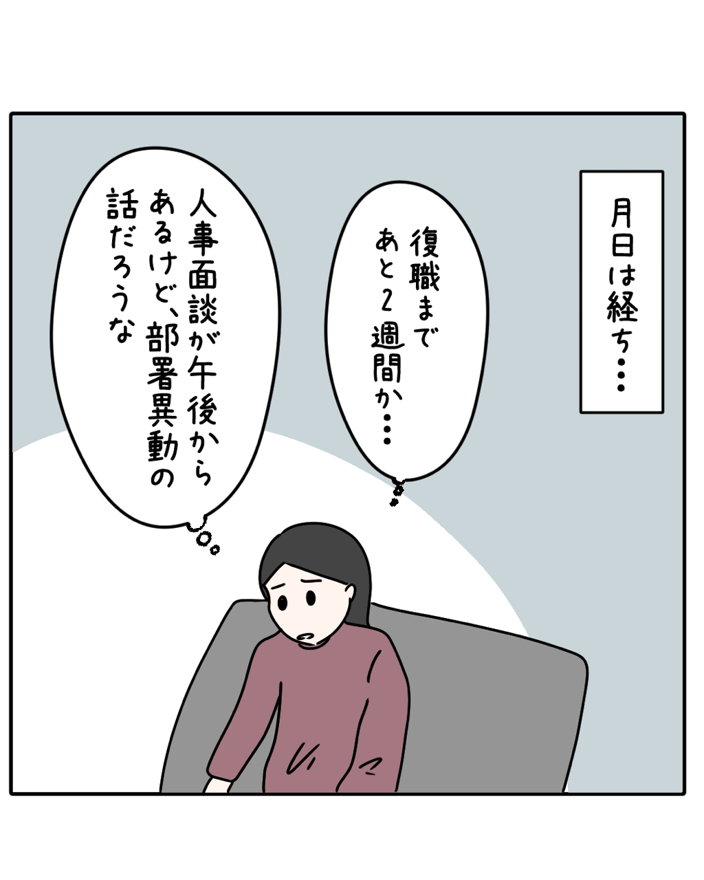 人事面談はどうなるのか気になるけど、えりが休職してる間に川田の仕事のできなさを棚に上げた被害者ムーブが露呈してパワハラ事案の再調査があり、部署異動取り消しなど事態が好転したことを明かされる場であってほしい。