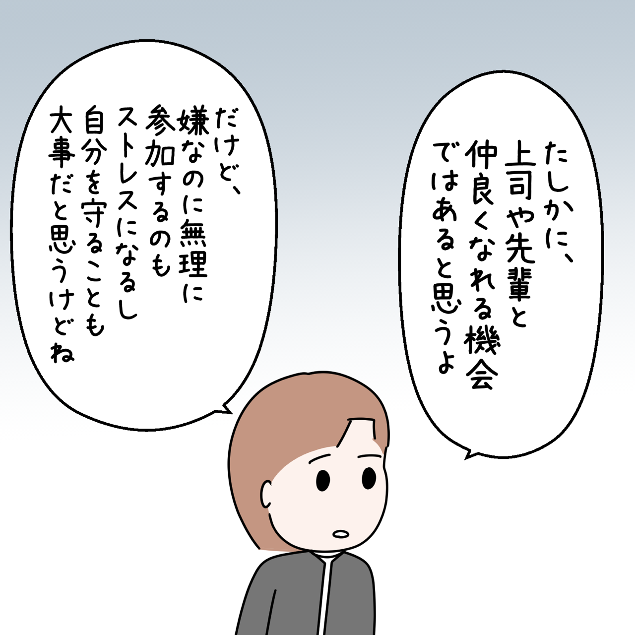私の同期はバリキャリ 63話 2024年12月17日 カテゴリなしの他の記事 < 前の記事次の記事 > コメント コメント一覧 (7) 1. ゆー 2024年12月17日 19:31 でたでた! 「あなたのために言ってるの」 0 おと がしました 2. み 2024年12月17日 19:47 なんで出しゃばって二課の後輩にあれこれ言ってるのかわからない。 おとさんがいるんだし。 0 おと がしました 3. ななし 2024年12月17日 19:57 おとさんに即相談するってことは、おとさんのこと信頼できる先輩って思ってるんだね 2人はベッタリじゃない、いい関係ができてるっぽくていいな 0 おと がしました 4. こういう 2024年12月17日 21:46 まだ下っぱのくせに上からアドバイスする先輩いる 「ノリはいいけど仕事は任せられない」って陰で言われてる奴 0 おと がしました 5. は? 2024年12月17日 22:41 よその部署がイチイチうるさいだけど。 この顔が妙にイラつく。 もう二度とランチ行くなー。 0 おと がしました 6. ななし 2024年12月18日 11:11 苦手なんで…って断るより角の立たない断り方はあるような気はする 0 おと がしました 7. ななし 2024年12月18日 13:22 苦手なら無理しないほうがいい。ほんとストレスにしかならない。そんなので顔売るよりも、目の前の仕事をきちんとこなすだけよ。仕事もできなくて顔売ることばかり考えてるやつを信用してはいけないぞ。だいたい違う部署なんだから余計なお世話よ。 0 おと がしました コメントフォーム 名前 コメント 記事の評価 リセット リセット 顔 星 情報を記憶 コメントを投稿する